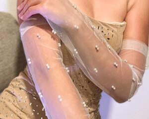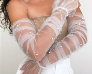 Handmade Elbow-Length Transparent Pearl Bridal Sleeves | Fing...