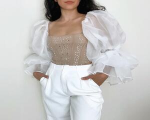 Voluminous Puffy Organza Sleeves, Sheer Organza Puffy Sleeves...