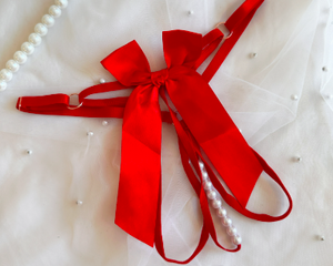 Handmade One-Size Red Bow Thong with Satin Ribbon and Pearl A...