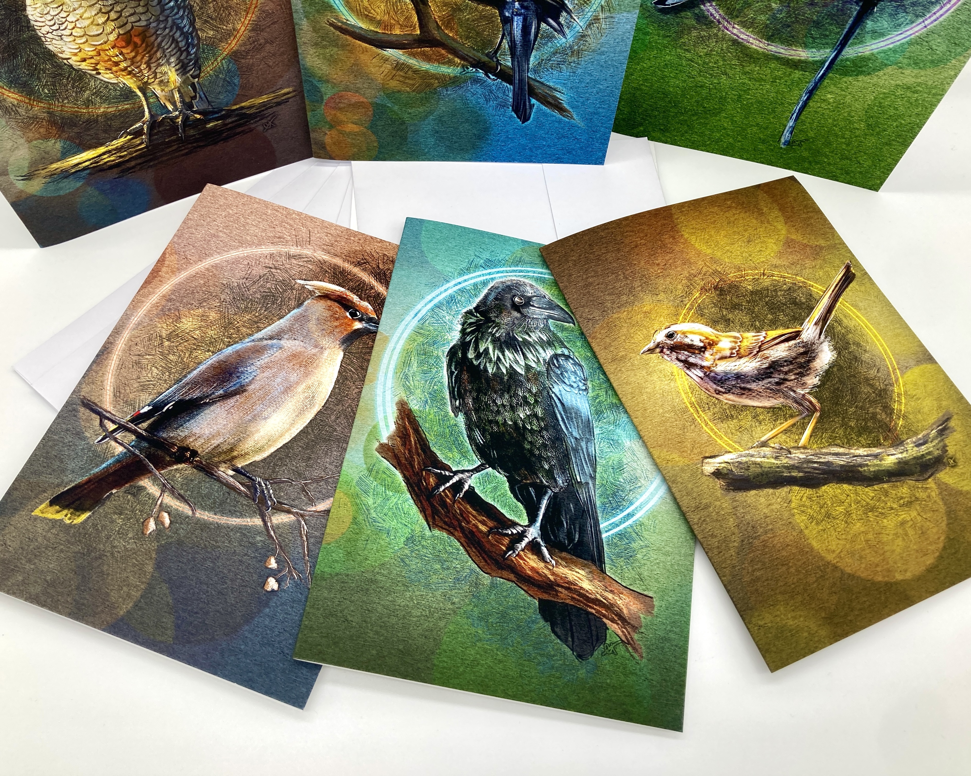 UNIQUE HAND-MADE ILLUSTRATIONS: This greeting card set includes six assorted designs that feature a different bird image on each front cover; these cards feature a luxurious wrap-around cover that extends the texture of the front image slightly around the creased spine to the back.