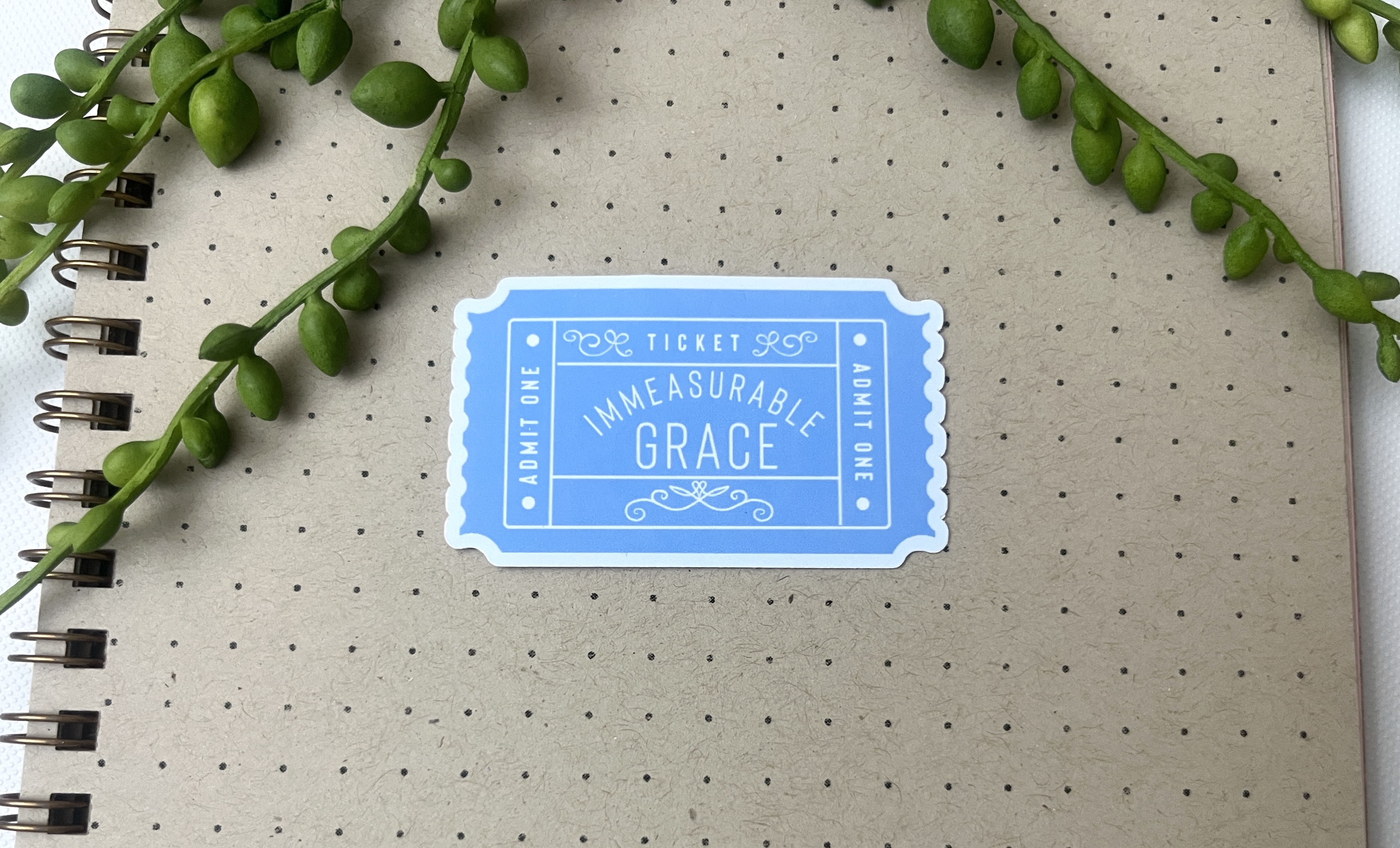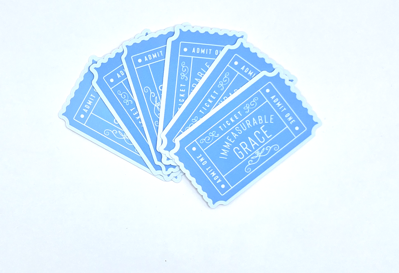 Immeasurable Grace Ticket Sticker – Matte Faith Verse Art | Christian Encouragement & Bible Journaling Gift