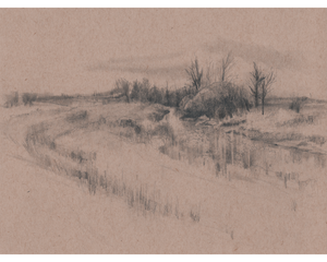 Original Pencil Landscape Drawing, Late Winter - Field with ...