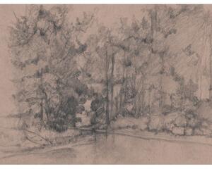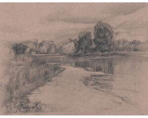 Original Pencil Landscape Drawing, Late Summer at the Lake, 1...