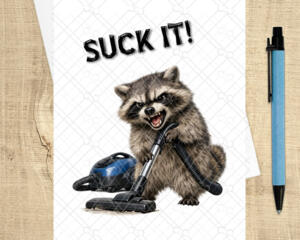 “Suck It!” Raccoon Vacuum Card | Sarcastic Humor Card | Petty...
