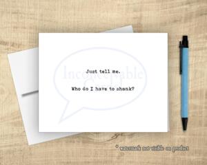 Funny Friendship Card – “Just Tell Me. Who Do I Have to Shank...