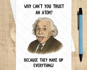 Einstein Funny Joke "Can't Trust an Atom"