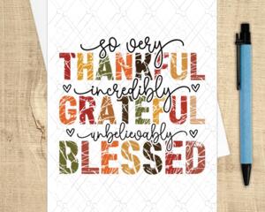 Holiday "Thankful, Grateful, Blessed" Thankgiving Day card