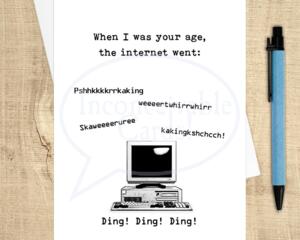 “When I Was Your Age, The Internet Went: Pshhhhkrkaking” Card