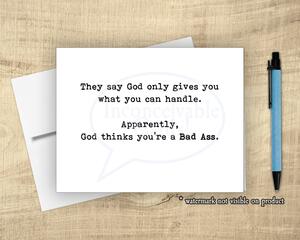 Funny Encouragement Card – “God Thinks You’re a Bad Ass” | Su...