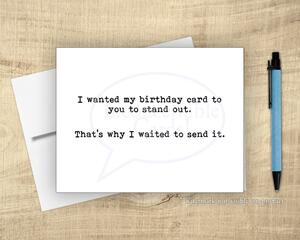 Funny Belated "My Card to Stand Out" Birthday Card, Sarcastic...