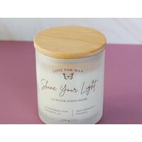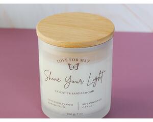 Inspirational 7 oz candle made with all natural soy coconut wax and non-toxic*, phthalate free fragrance oils. Hand poured in small batches. Comes in a white iridescent glass jar with a bamboo lid, and will give about 45 hours of burn time.