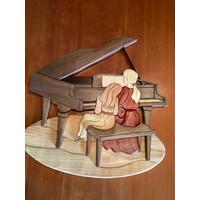 This cute gnome intarsia is titled “The Wood Cutting Gnome”. There are over 70 pieces each hand cut and shaped in this piece. The woods are cherry, walnut, poplar, aspen, and maple. The intarsia has a hanger on the back and is designed as a wall hanging. It is a little over 15” tall. What a nice gift this would make for your favorite wood cutter or gnome collector.