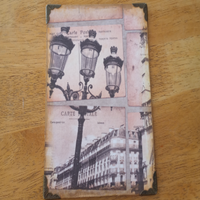 Each writing board if crafted from heavy book board, covered in beautiful and/or interesting paper, shellacked and finished off for a protective coating that is easy to write on and finished off with a burnished edge and protective corner covers.