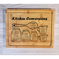 Each cutting board measures 13.75"x11"x.5625 and comes with 2 coats of butcher block oil applied to it to preserve the engraving and prevent bacteria from forming.