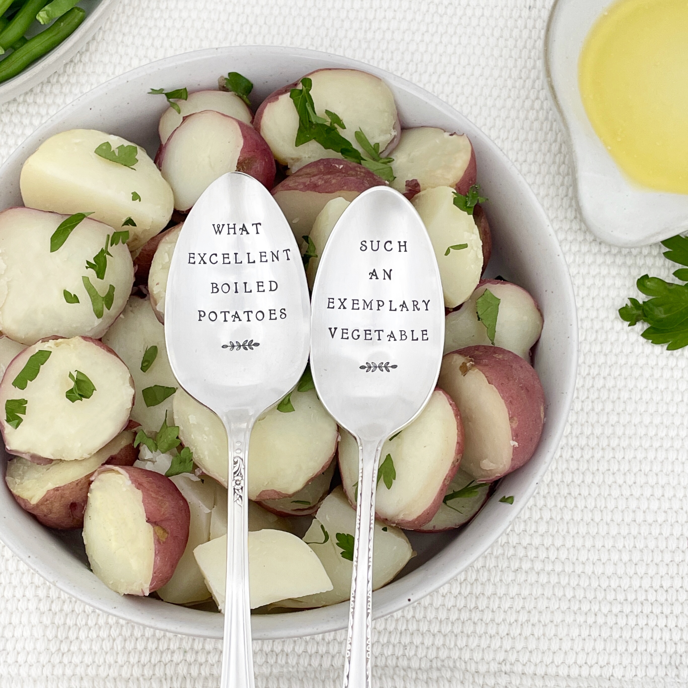 These hand stamped vintage serving spoons are the perfect, unique gift for your Jane Austen reader! Bringing a bit of whimsy and a literary spin to the dinner table. Priced individually, you can choose a favorite - or add both to your cart to create a pairing.