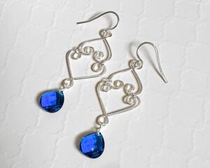 Silver Wire Heart Design Sapphire Blue Earring Drops, 2.5 Inc...