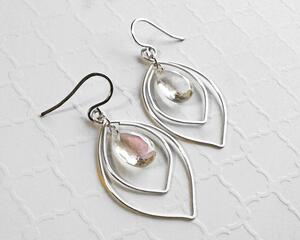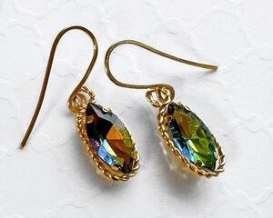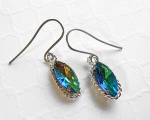 Wire Wrapped Vitrail Marquise Earrings, 1.3 Inches Long