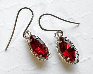 Wire Wrapped Ruby Red Marquise Earrings, 1.3 Inches Long