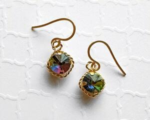 Wire Wrapped Vitrail Round Earrings, 1 Inch Long