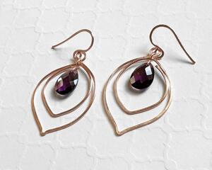 Amethyst Hammer Rose Gold Hoop Earrings, 1.9 Inches Long