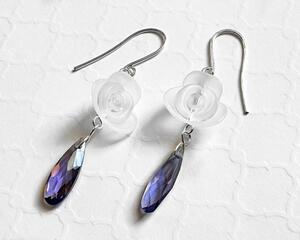 Wire Wrapped White Rose Tanzanite Drop Earrings, 2.3 Inches Long