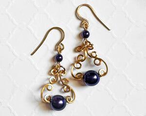 Wire Wrapped Purple Pearl Drop Earrings, 1.6 Inches Long