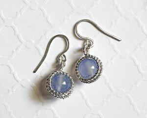 Wire Wrapped Blue Agate Stone Bead Earrings, 1.1 Inches Long