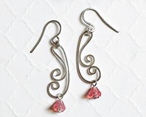 Pink Floral Wire Design Drop Earrings, 1.7 Inches Long