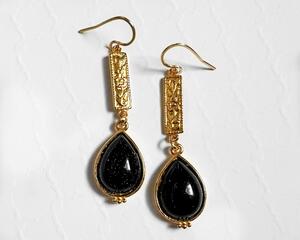 22K Gold Floral Teardrop Blue Goldstone Earrings, 2.3 Inches ...