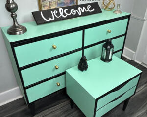 2 set piece solid wood retro green Mcm Nightstand and Dresser