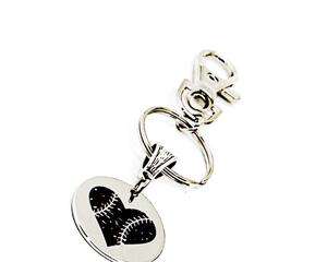 Baseball Heart Softball Heart Charm Clip On Keychain, Basebal...