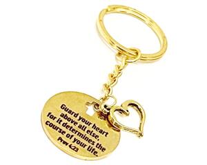 Guard Your Heart Above All Else Proverbs 4 23 Keychain, Goldt...