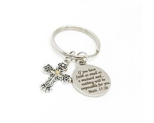 Mustard Seed Scripture Verse And Cross Charm Keychain, Matthe...