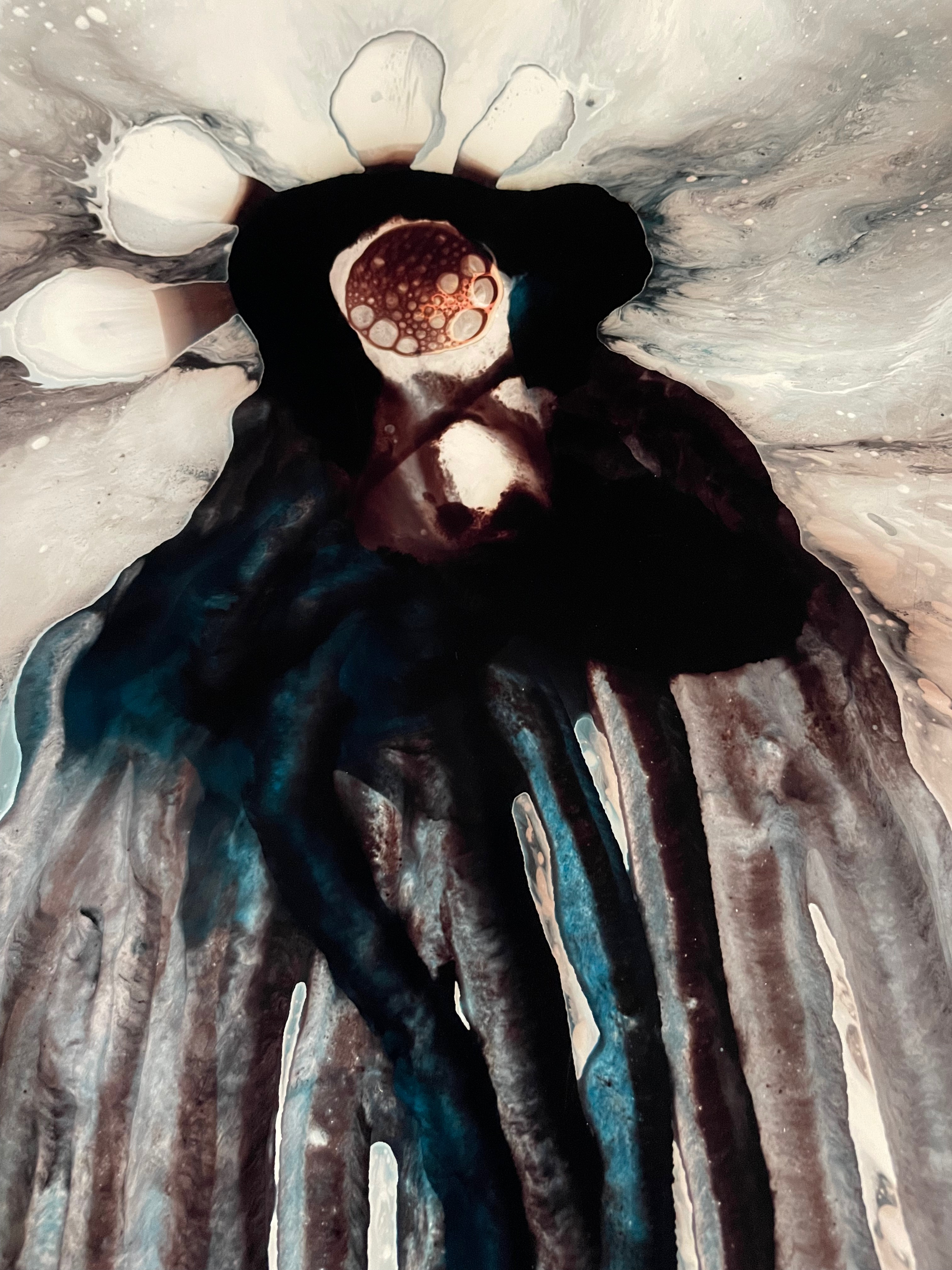 -Yes. I paint directly onto various types of blank photographic papers and canvas using water, color inks, and unconventional household chemicals and liquids of different viscosities. The movement of the liquids creates physical reactions that are instantly registered by the inks on the paper. The result is paintings characterized by sharpness, tonal gradation, depth of field, and flowing movement, resembling the work of nature. Each painting is one-of-a-kind, I do not use cameras, digital printers, or any other form of reproduction.
