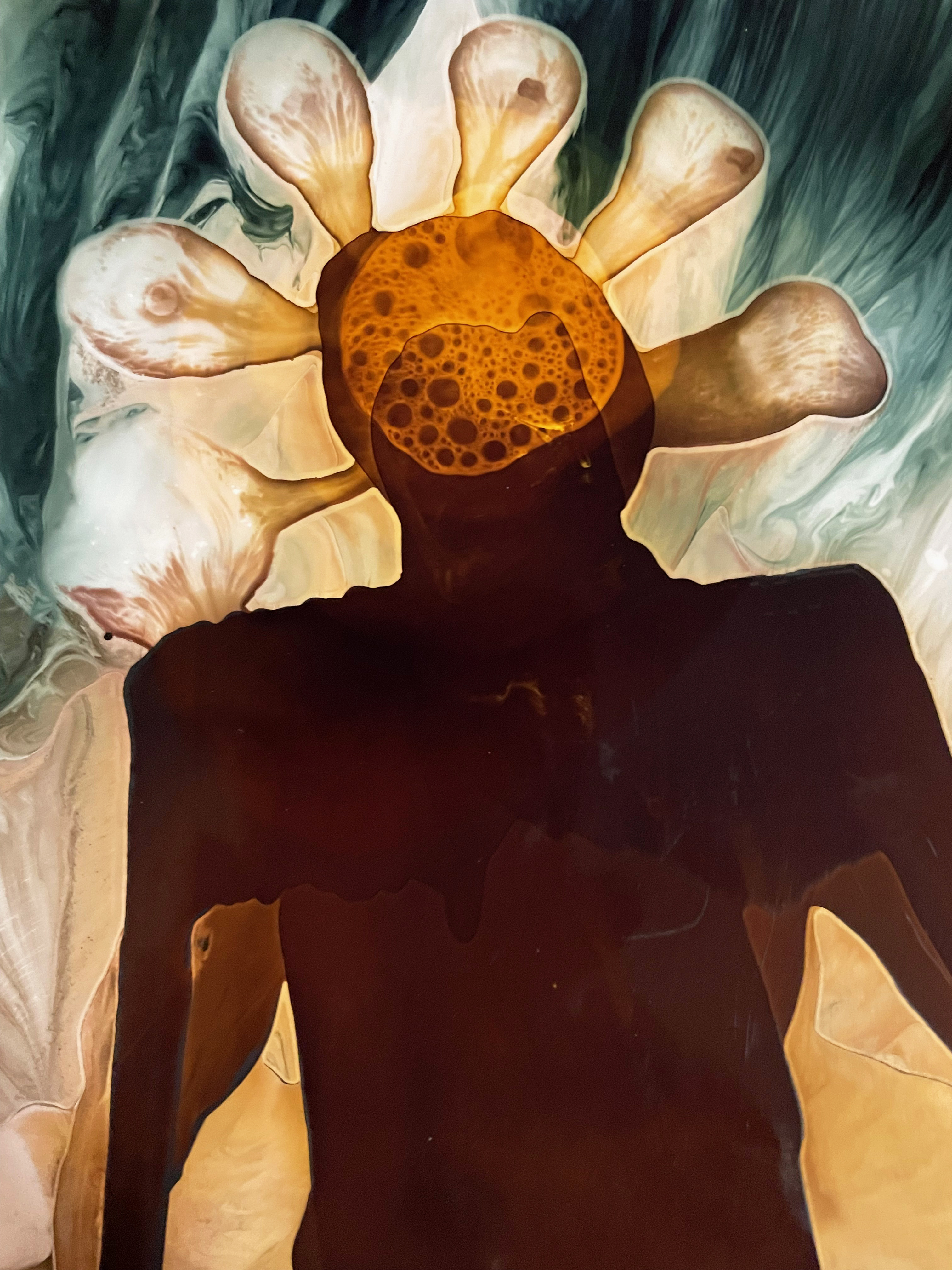 -Yes. I paint directly onto various types of blank photographic papers and canvas using water, color inks, and unconventional household chemicals and liquids of different viscosities. The movement of the liquids creates physical reactions that are instantly registered by the inks on the paper. The result is paintings characterized by sharpness, tonal gradation, depth of field, and flowing movement, resembling the work of nature. Each painting is one-of-a-kind, I do not use cameras, digital printers, or any other form of reproduction.