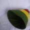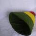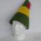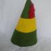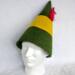 Sturdy - lined - Pink, Blue or Green Elf Hat with a red or yellow stripe and a red feather.