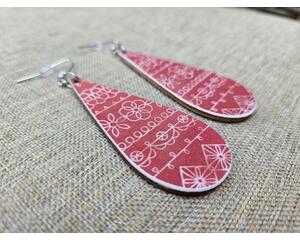 Red & White Skinny Teardrop Earrings with Lace Pattern