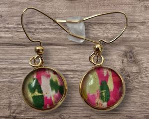 Pink Green and Gold Glass Cabochon Earrings - Shenandoah Appl...