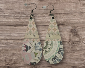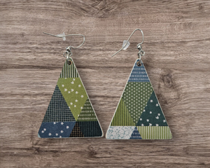 Boho Patchwork Wooden Decoupage Earrings - Quilter's Earrings