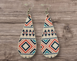Geometric Boho Wooden Decoupage Earrings – Clearance Sale