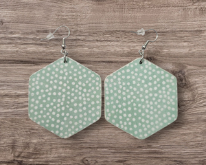 Handcrafted Hexagon Wood Decoupage Earrings – Mint Green with...