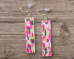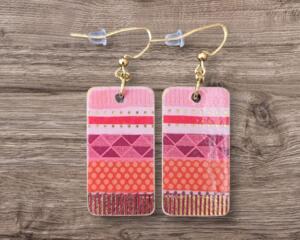 Bold Boho Pink Geometric Wooden Decoupage Earrings – Post Back
