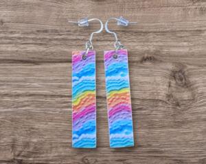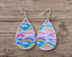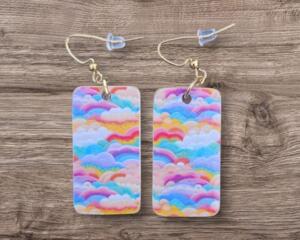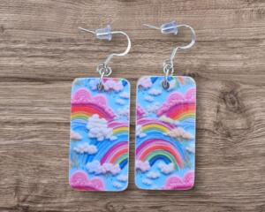 Rainbow Dreams Wooden Decoupage Earrings – Double-Sided Light...