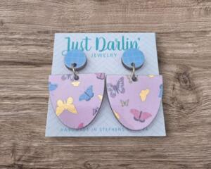 Handmade Double-Sided Butterfly Wooden Decoupage Earrings – P...