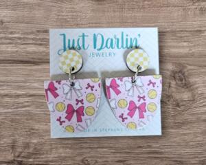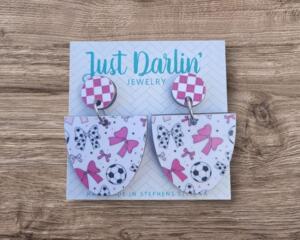 Soccer Ball & Bow Coquette Wooden Decoupage Dangle Earrings