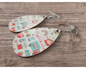 Love Letter Wooden Decoupage Dangle Teardrop Earrings