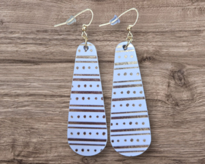 White & Gold Stripe Dot Wooden Earrings – Double-Sided, Light...