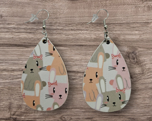Easter Bunny Wooden Decoupage Earrings – Handmade Teardrop Je...