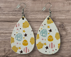 Clearance Easter Teardrop Earrings – Cute Chicks & Eggs Design