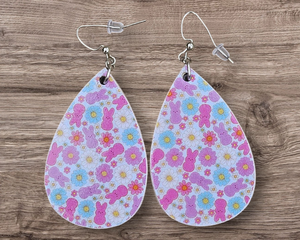 Handmade Decoupage Easter Bunny Teardrop Earrings – Wooden Sp...